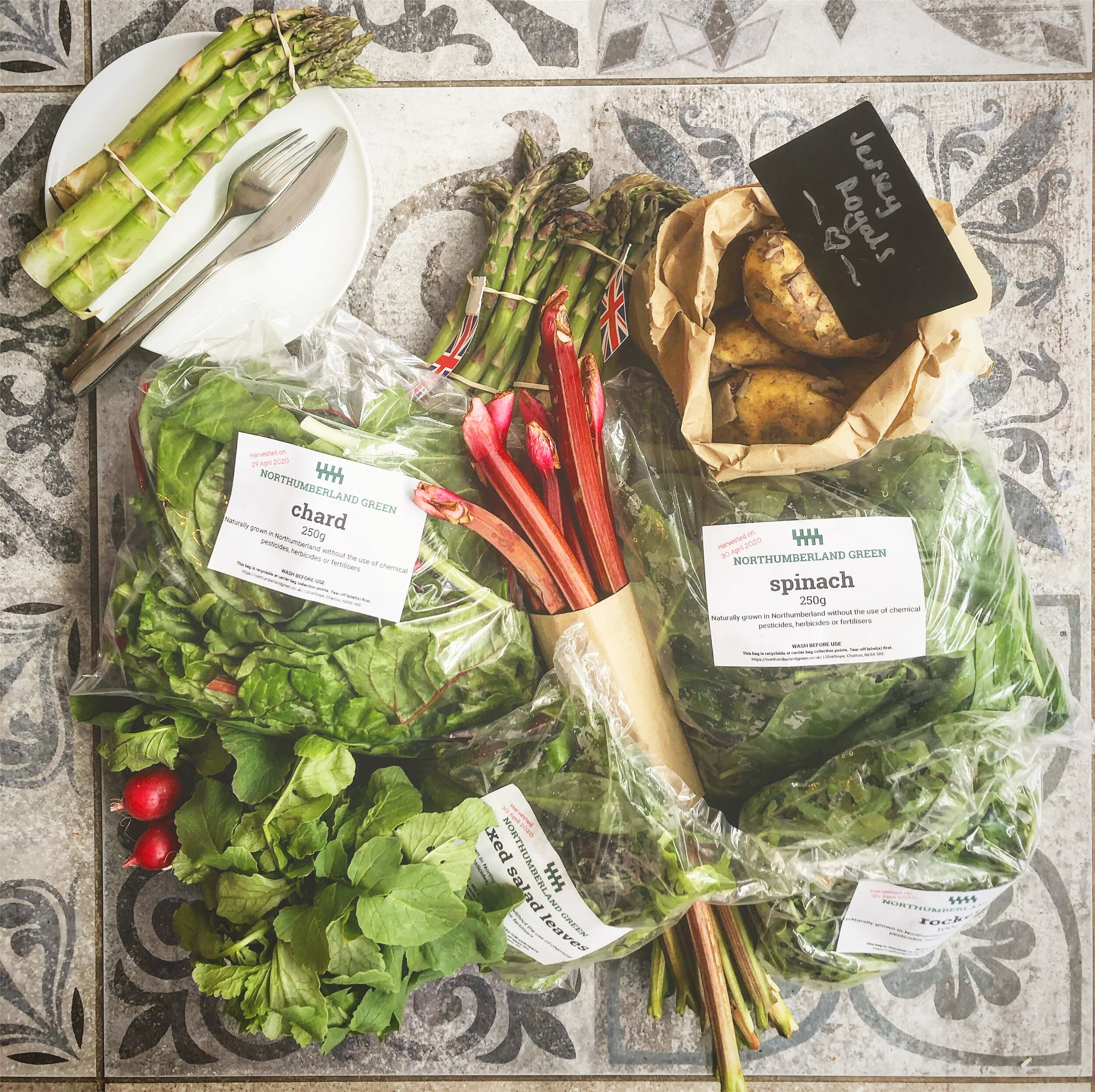 We always have a range of fresh fruit and vegetables available which we try to keep seasonal. We are very proud to showcase quality organic Northumberland products such as mixed salad leaves, rainbow chard, pea shoots, asian leaves. We love the asparagus and rhubarb seasons and can’t get enough Jersey Royals when they hit the shelves.