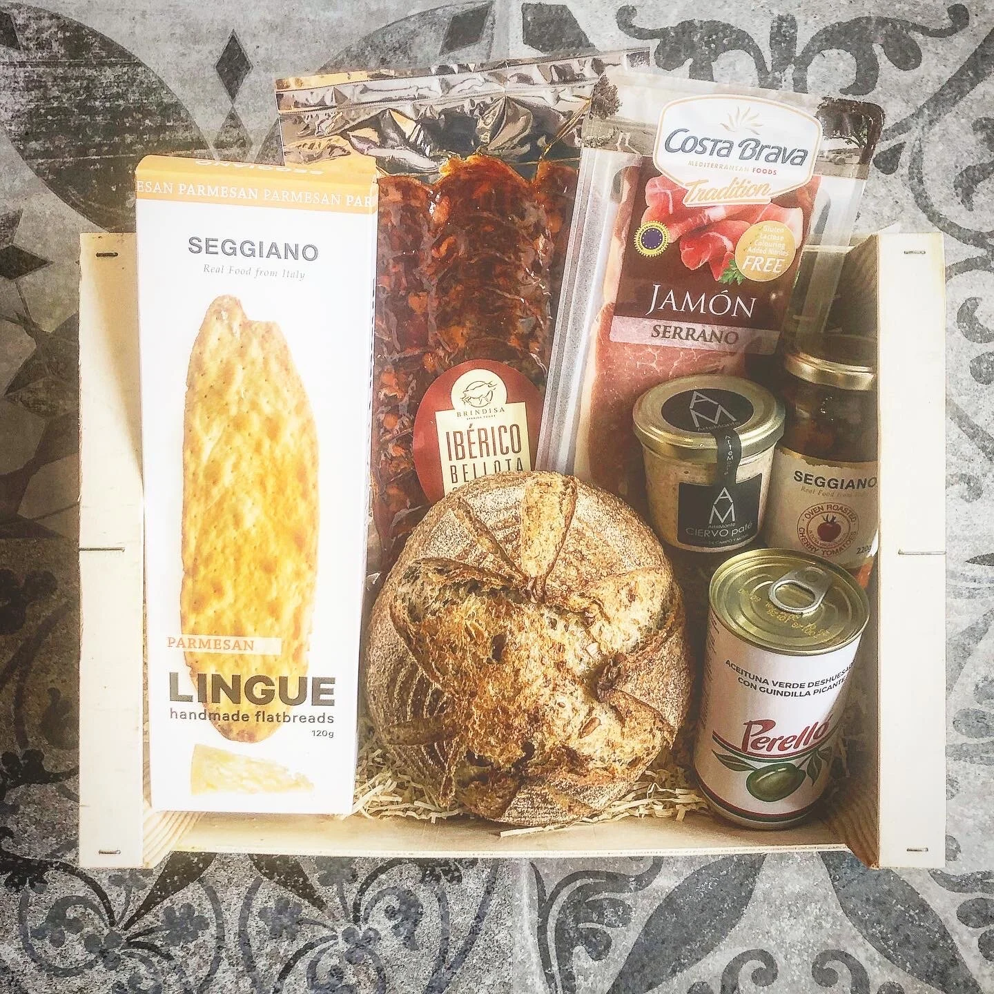 Can’t pop over to Europe this year, why not bring it to your home. Beautiful Spanish and Italian antipasti designed to get any evening off to a bang: Perello olives (probably the best olives we’ve ever tasted), Seggiano flatbreads, beautiful serrano ham, smoky Iberico sliced chorizo, sun dried tomatoes, Artemonte venison pate, and fresh bread.